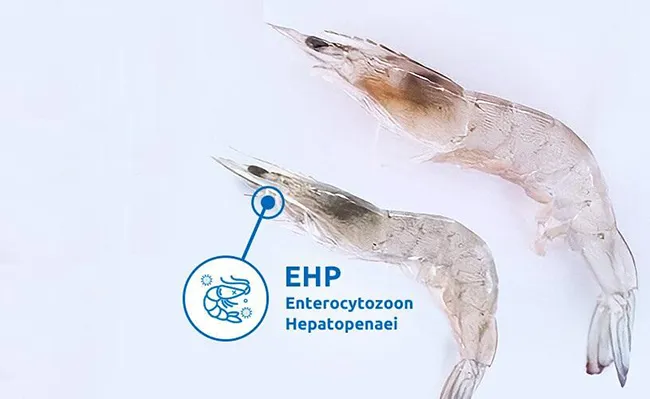 EHP (Enterocytozoon hepatopenaei) là vi bào tử trùng ký sinh trong tế bào gan tụy, khiến tôm giảm khả năng hấp thu dinh dưỡng, chậm lớn và dễ mắc các bệnh cơ hội.
