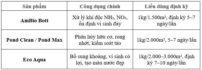 - Sau mưa hoặc khi tảo tàn → xử lý Pond Clean + AmBio Bott ngay để tránh phát sinh khí độc.