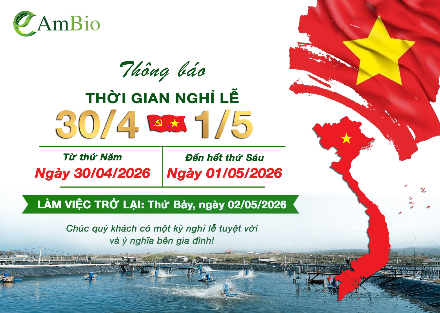 AmBio xin trân trọng thông báo lịch nghỉ lễ năm 2026 như sau: