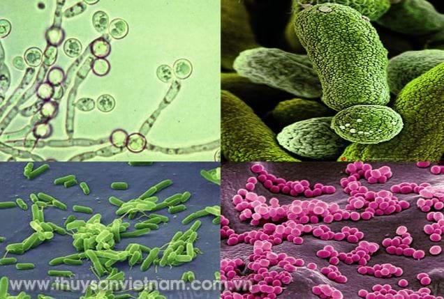 Về chủng loại, các chủng vi sinh vật được sử dụng trong nuôi trồng thủy sản hiện nay được chia làm 3 nhóm: Gồm những vi sinh vật sống như vi khuẩn thuộc nhóm Bacillus, Lactobacillus, Saccharomyces... người ta thường dùng trộn vào thức ăn; Các vi sinh vật có tính đối kháng hoặc cạnh tranh thức ăn với vi sinh vật gây bệnh như vi khuẩn Bacillus licheniformis, Bacillus sp... được dùng cải thiện nền đáy ao nuôi; Nhóm các vi sinh vật cải thiện chất lượng môi trường như vi khuẩn Nitrosomonas, Nitrobacter, Actinomyces, Bacillus, Rhodobacter sp, Rhodospirillum, Rhodopseudomonas viridis... dùng xử lý nước ao và nền đáy. Trong đó, một số chủng vi sinh vật khi sử dụng sẽ làm tăng hàm lượng ôxy, ổn định pH và các chỉ số môi trường trong ao nuôi. Cụ thể, bổ sung nguồn vi sinh với nhóm vi khuẩn tự dưỡng Bacillus sẽ mang lại hiệu quả cao hơn là cố gắng cung cấp nhóm ôxy hóa amonia (Nitrosomonas và Nitrobacter) vì khả năng nhân sinh khối nhanh và ít nhạy cảm hơn với các yếu tố môi trường. Chúng cũng hiệu quả hơn trong việc phân hủy các chất hữu cơ trong ao vì chúng sử dụng nguồn hữu cơ để xây dựng cơ chất. Ngoài ra, nhóm vi sinh này sống tốt hơn ở dạng ngủ đông trong các sản phẩm vi sinh trên thị trường.